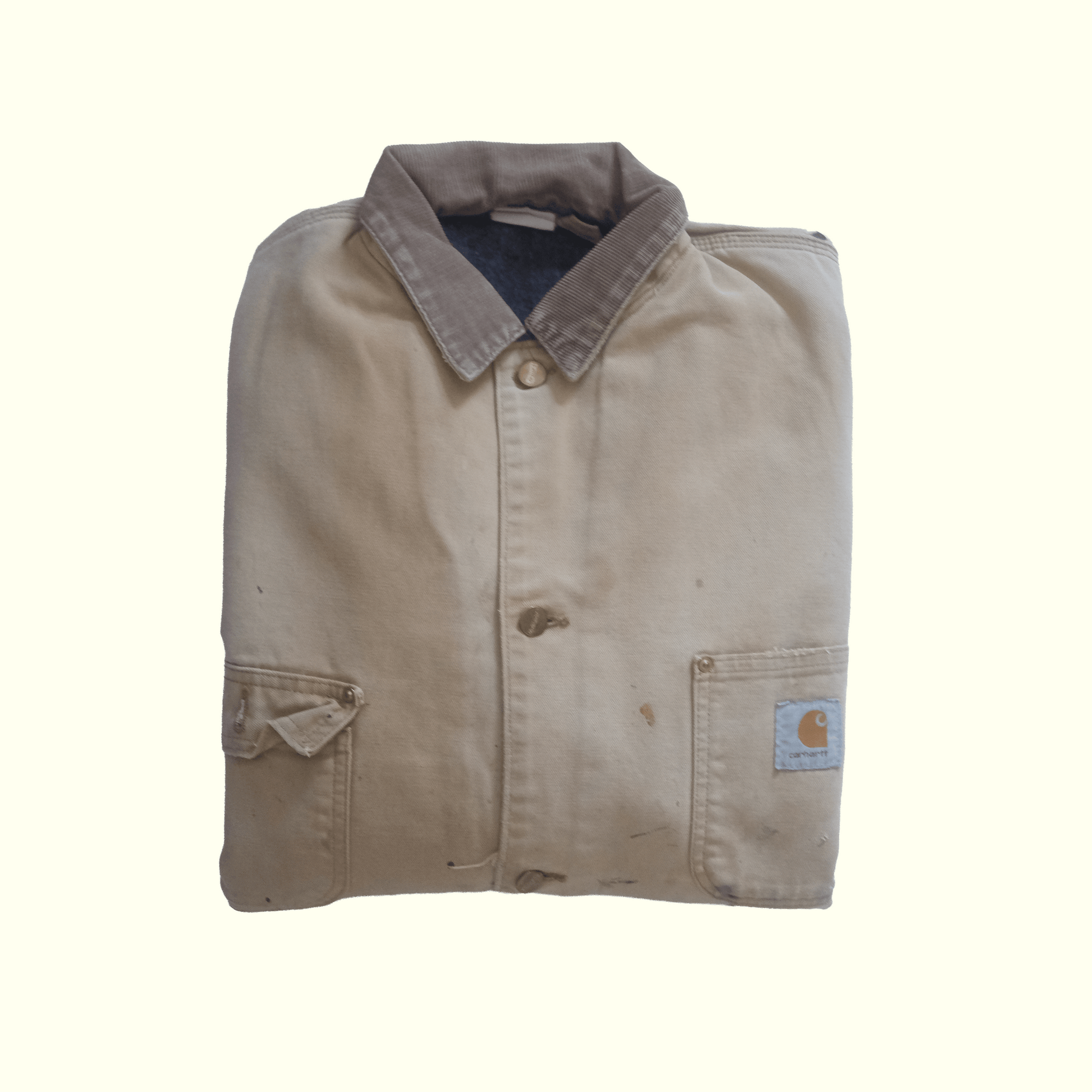 CARHARTT CHORE COAT BLANKET LINED VTG 90s 80s BROWN DISTRESSED JACKET. ORIGINAL CARE TAG.