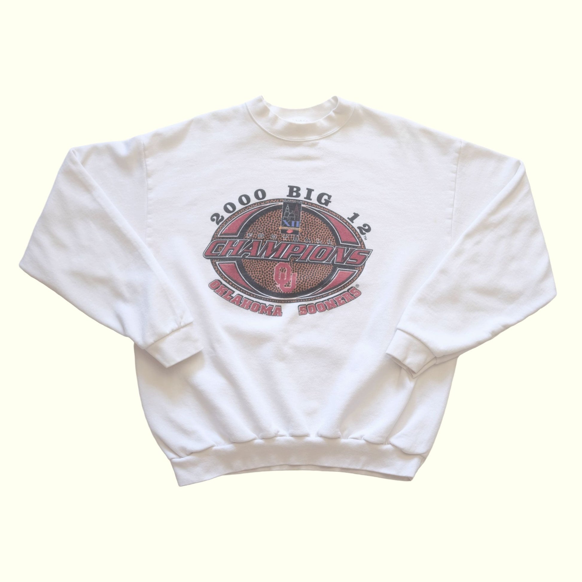 NCAA VTG Y2K RETRO OU SOONERS OKLAHOMA FOOTBALL BIG 12 CHAMPIONS CREWNECK. OFFICIAL LICENSED TEAM APPAREL. ORIGINAL CARE TAG.