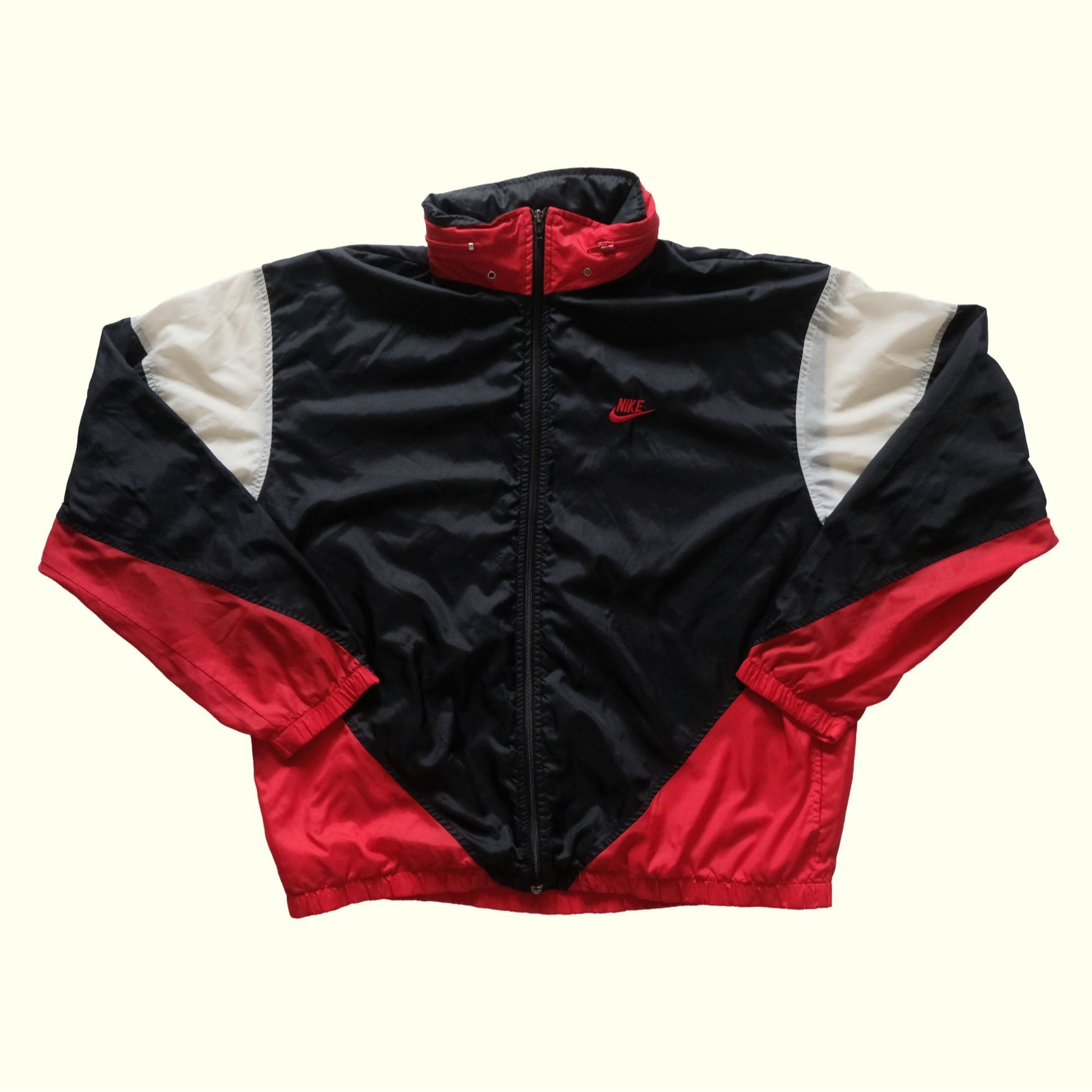 NIKE VTG 90s 80s RETRO USA MADE TRACK 100% NYLON JACKET BLACK RED.