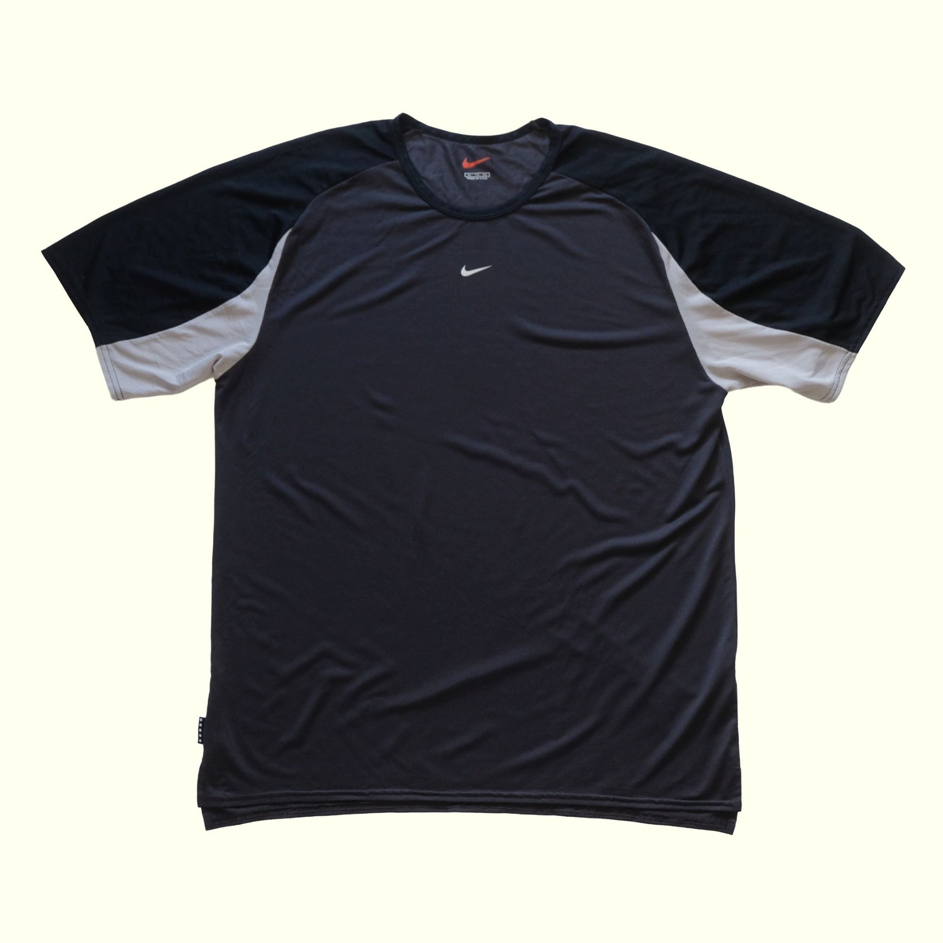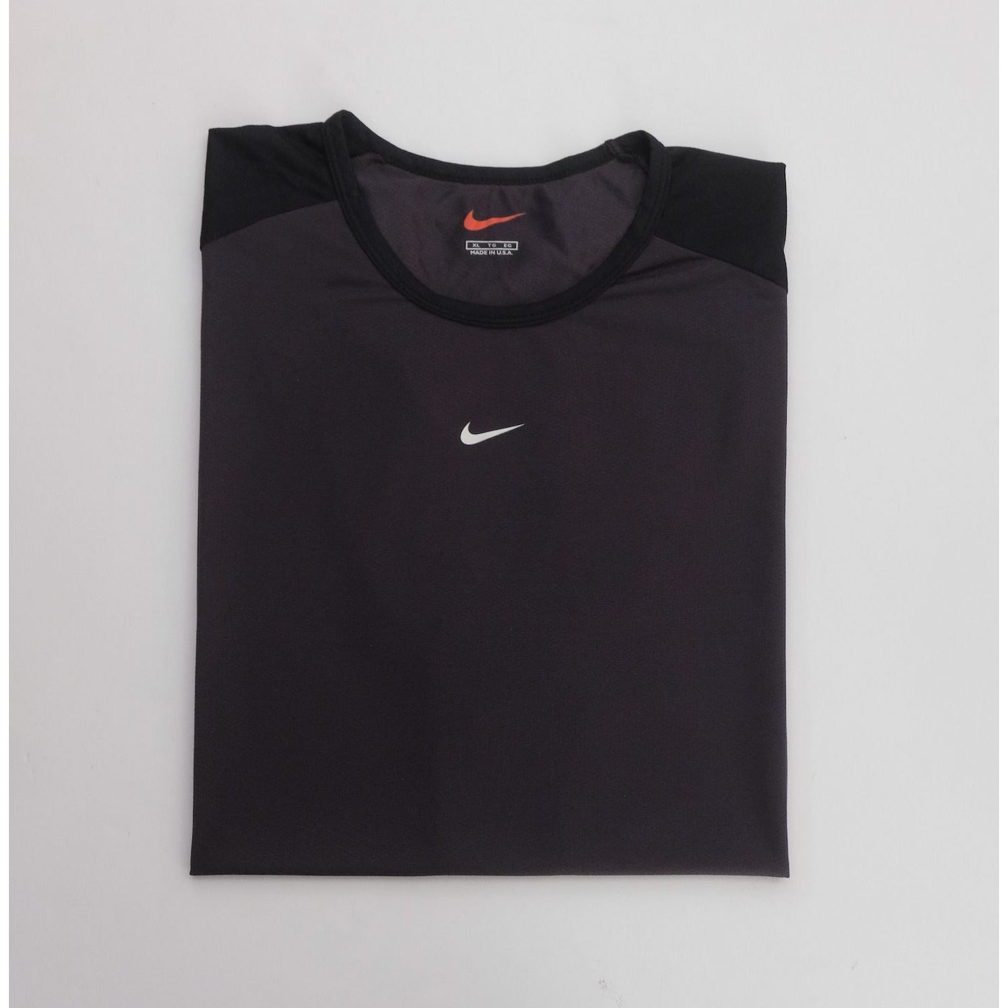NIKE VTG 90s RETRO USA MADE CENTER SWOOSH ACTIVE BLACK T SHIRT 1999. ORIGINAL CARE TAG.